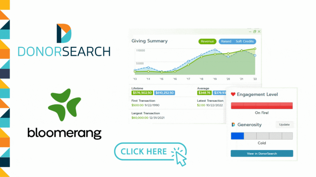 DonorSearch’s integration with Bloomerang takes data-driven donor engagement to the next level. By accessing comprehensive, accurate prospect research insights directly in your Bloomerang CRM, your nonprofit can make informed decisions, maximize fundraising campaigns, and strengthen your donor community through tailored cultivation.