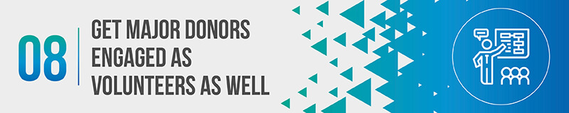 Involvement opportunities like these strengthen your donors’ bond with your organization. That is true for all small and mid-level donors as well as major donors. Create fulfilling opportunities for them to get hands-on experience with your organization and build that connection.