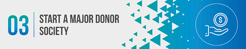 Essentially, the concept of a major donor society gives you a chance to build a community of major donors through exclusivity and incentives.