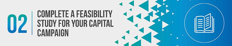 A feasibility study assesses whether your nonprofit has the capacity and community support to succeed with a capital campaign. During the study, your organization will critically review its resources, internal data, and the external market. A series of 30-40 interviews with key stakeholders, like prospective donors and current and past board members, will also be a major part of the feasibility study (which is where a consultant can be extremely helpful).