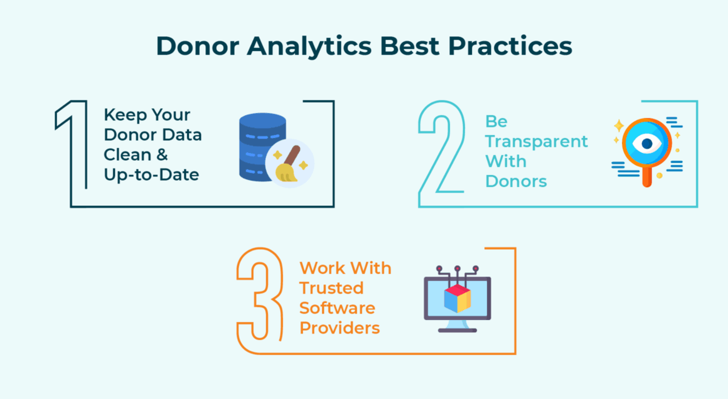 Now that you know what donor analytics to incorporate into your nonprofit’s strategy, here are a few additional tips to take your approach from good to great.