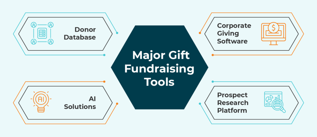 Like with any fundraising strategy, having the right technology can drastically simplify major giving while maximizing the revenue you bring in. Although there is a wide range of software to choose from, the most critical solutions to add to your toolkit include: