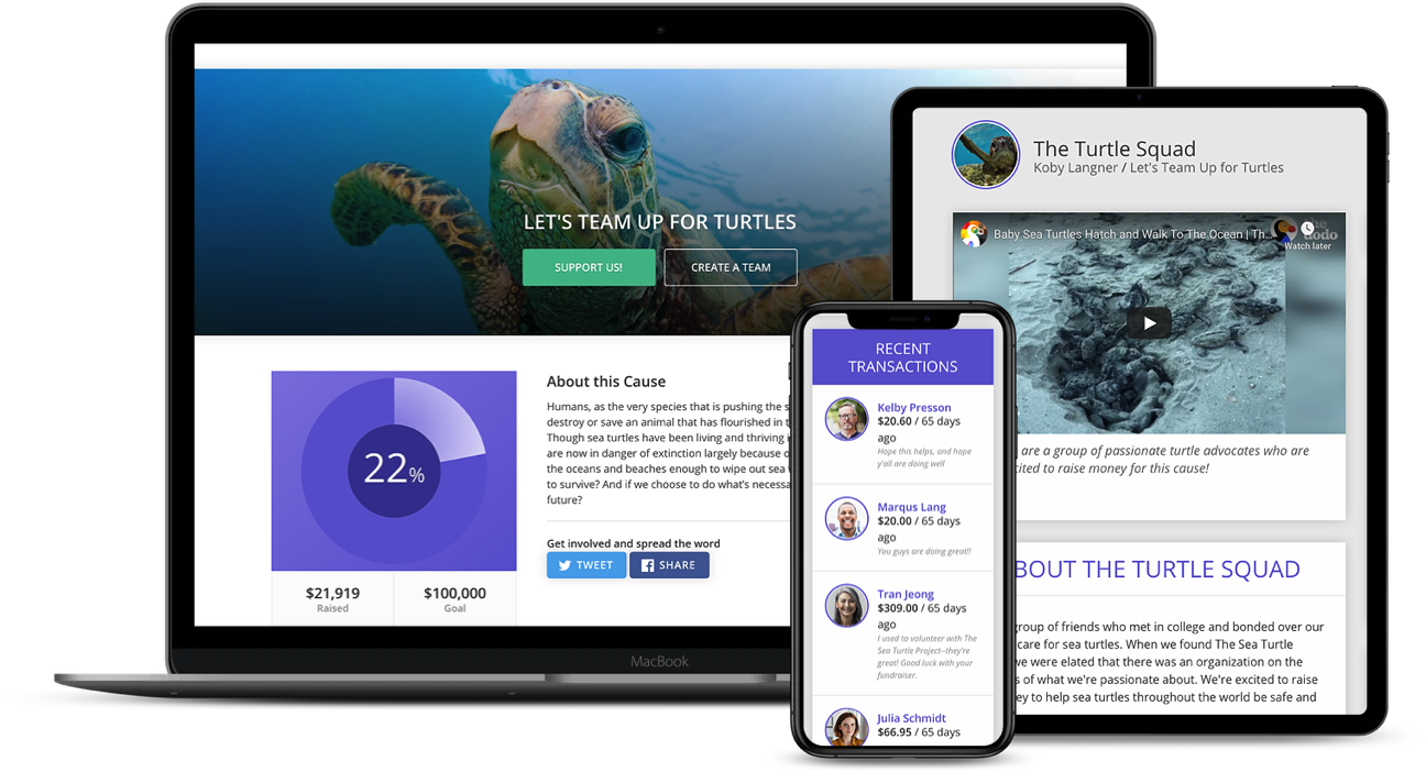 • Seamless integration with APIs including TeamRaiser, Rallybound, and DonorDrive