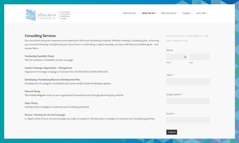 As you explore the list, consider what your organization needs from a fundraising consultant and the budget you have to work with an outside party. These two factors will help you determine which firm will be the best fit. Let’s begin!