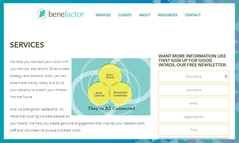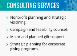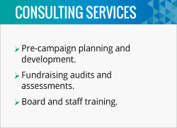 Nonprofits can partner with this fundraising consulting firm to take advantage of sustainable, ongoing development planning as well as training, support, and coaching for volunteers, staff, and board members.
