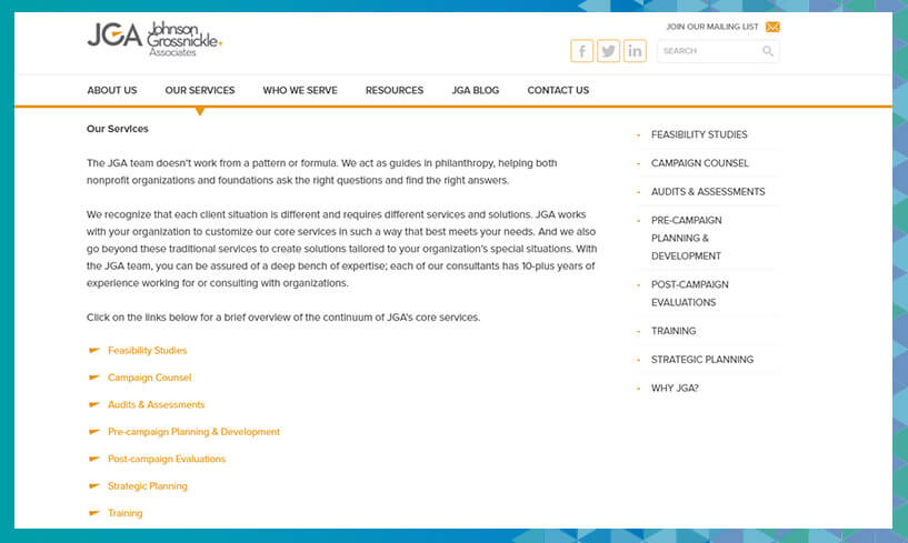 The team members at JGA have worked as senior development officers and nonprofit leaders all over the country. They bring real-world insights and expertise to their engagements, providing you with the knowledge they’ve learned from their own experiences.